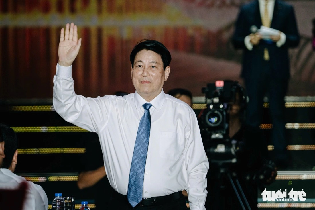 | Chủ tịch nước Lương Cường đến tham dự chương trình tại điểm cầu TP Hồ Chí Minh. |