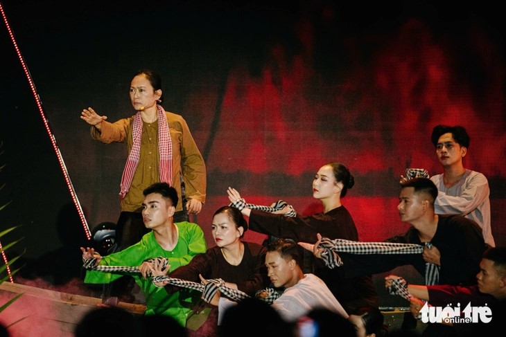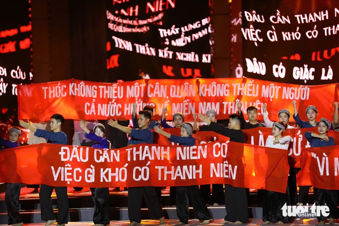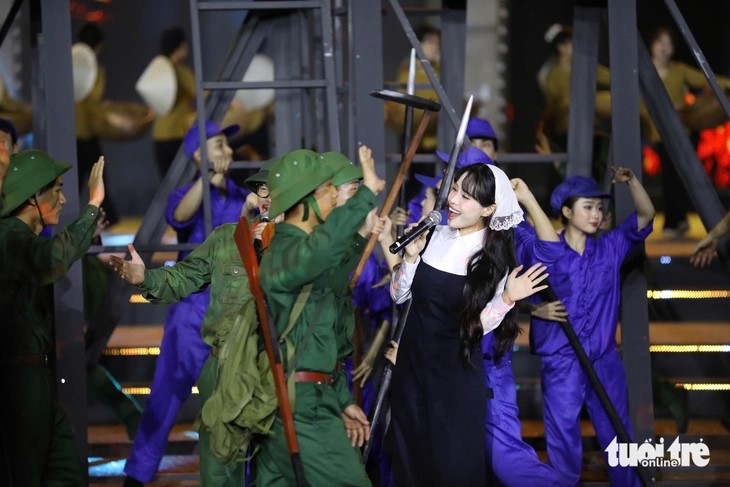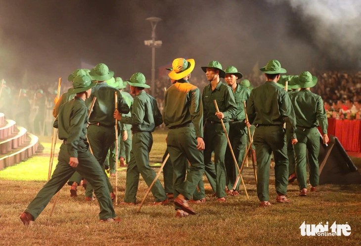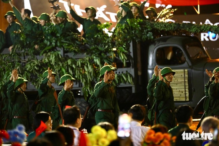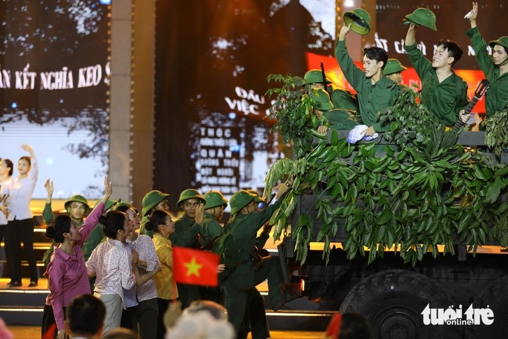 | Tái hiện hình ảnh đoàn quân Tiến về Sài Gòn ở điểm cầu Quảng Trị. |