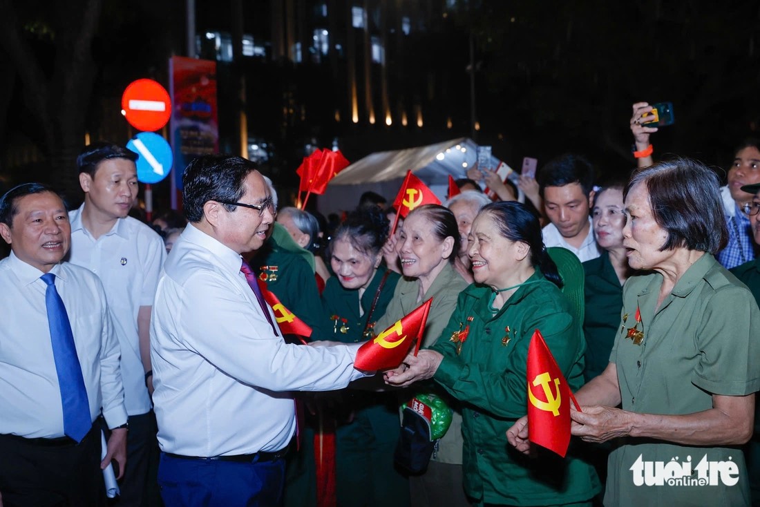 | Thủ tướng Phạm Minh Chính và các cựu chiến binh dự tại điểm cầu Hà Nội. |