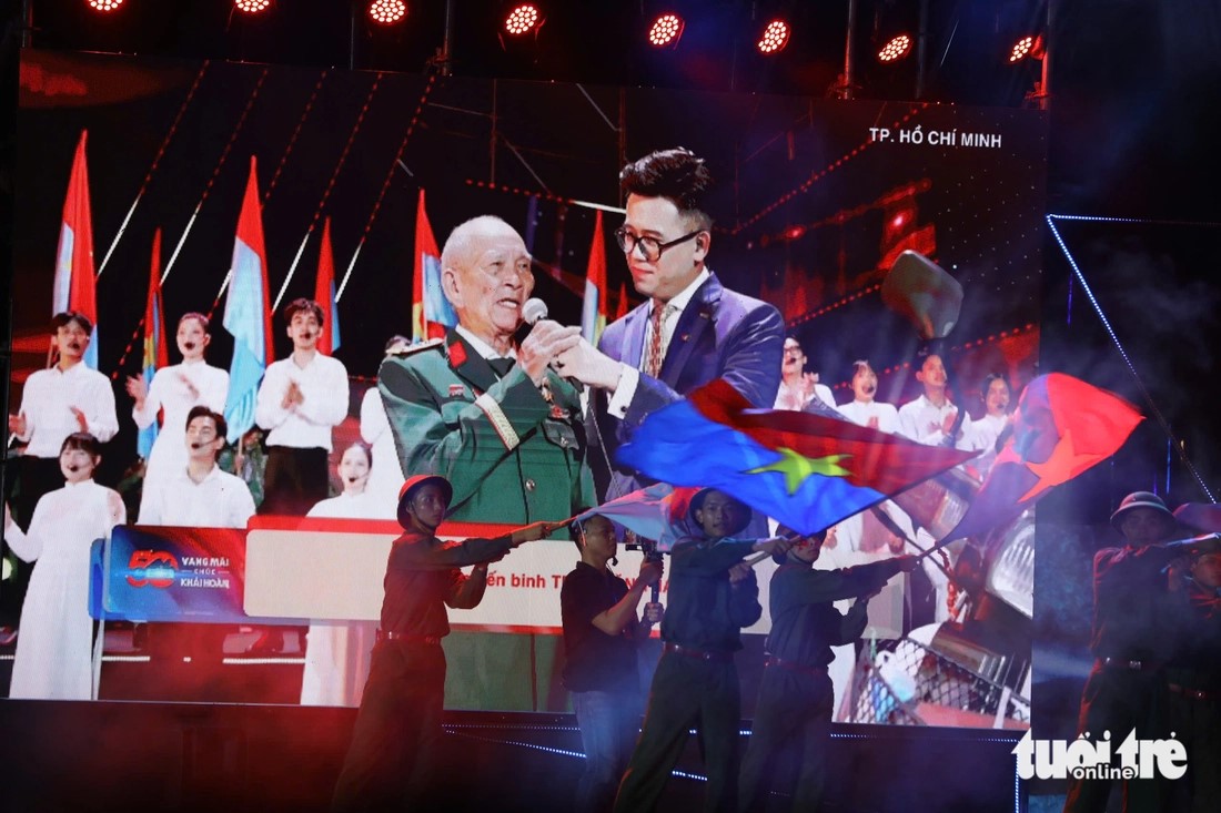 Xuất hiện trên sân khấu, ông Trần Văn Thanh (76 tuổi) - người cựu chiến binh đi xe máy từ Vinh vào TP.HCM để xem diễu binh, gây sốt mạng xã hội những ngày qua - cũng khiến không ít người xúc động.