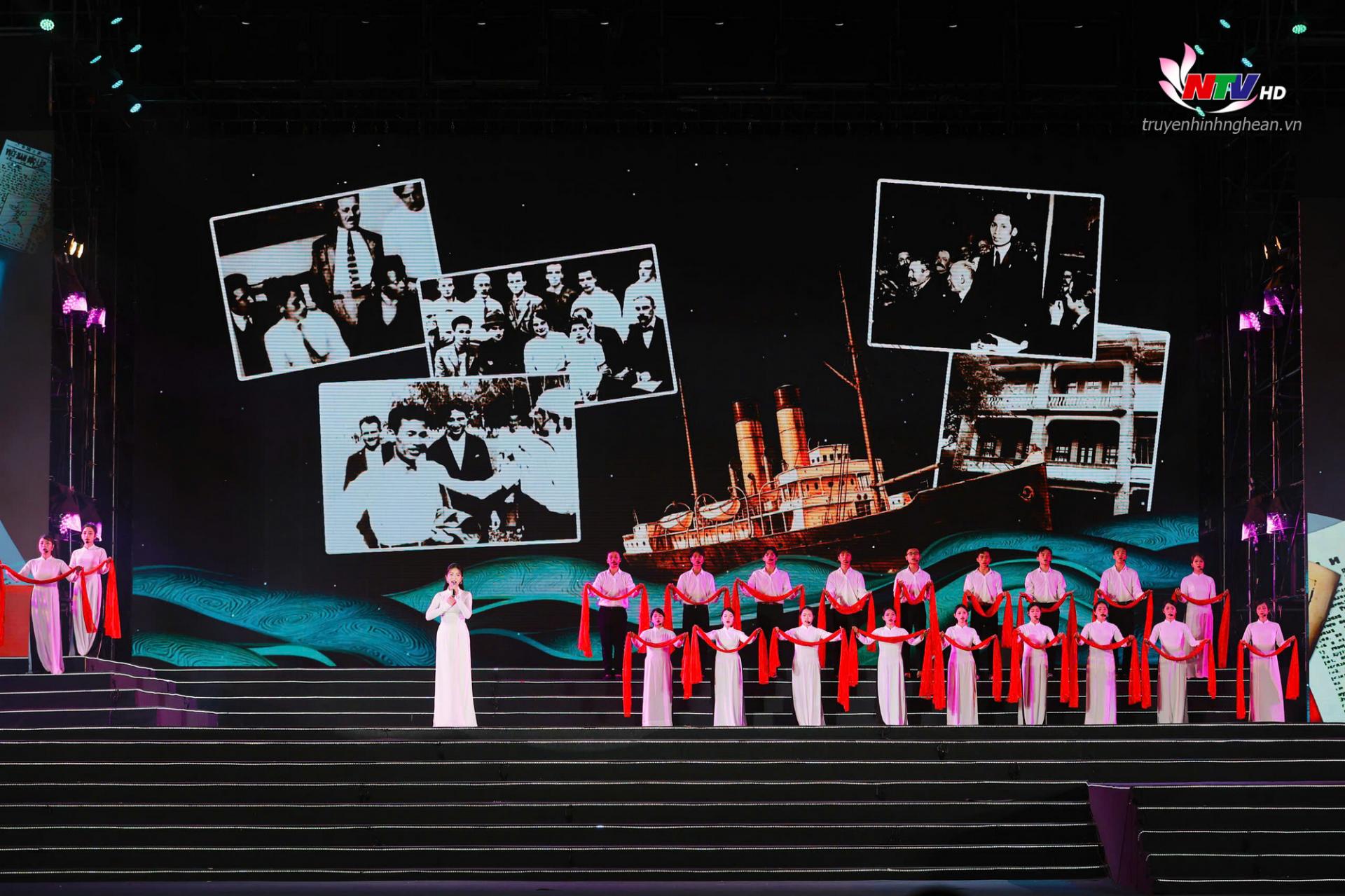 Xuyên suốt chương trình là cuộc hành trình bằng ngôn ngữ nghệ thuật, bắt đầu từ Làng Sen, theo bước chân Người “lênh đênh bốn biển” tìm đường cứu nước, đến những ngày “cháo bẹ rau măng” gian khổ nơi núi rừng Việt Bắc, ngày Người trở về gắn bó với Thủ đô Hà Nội.