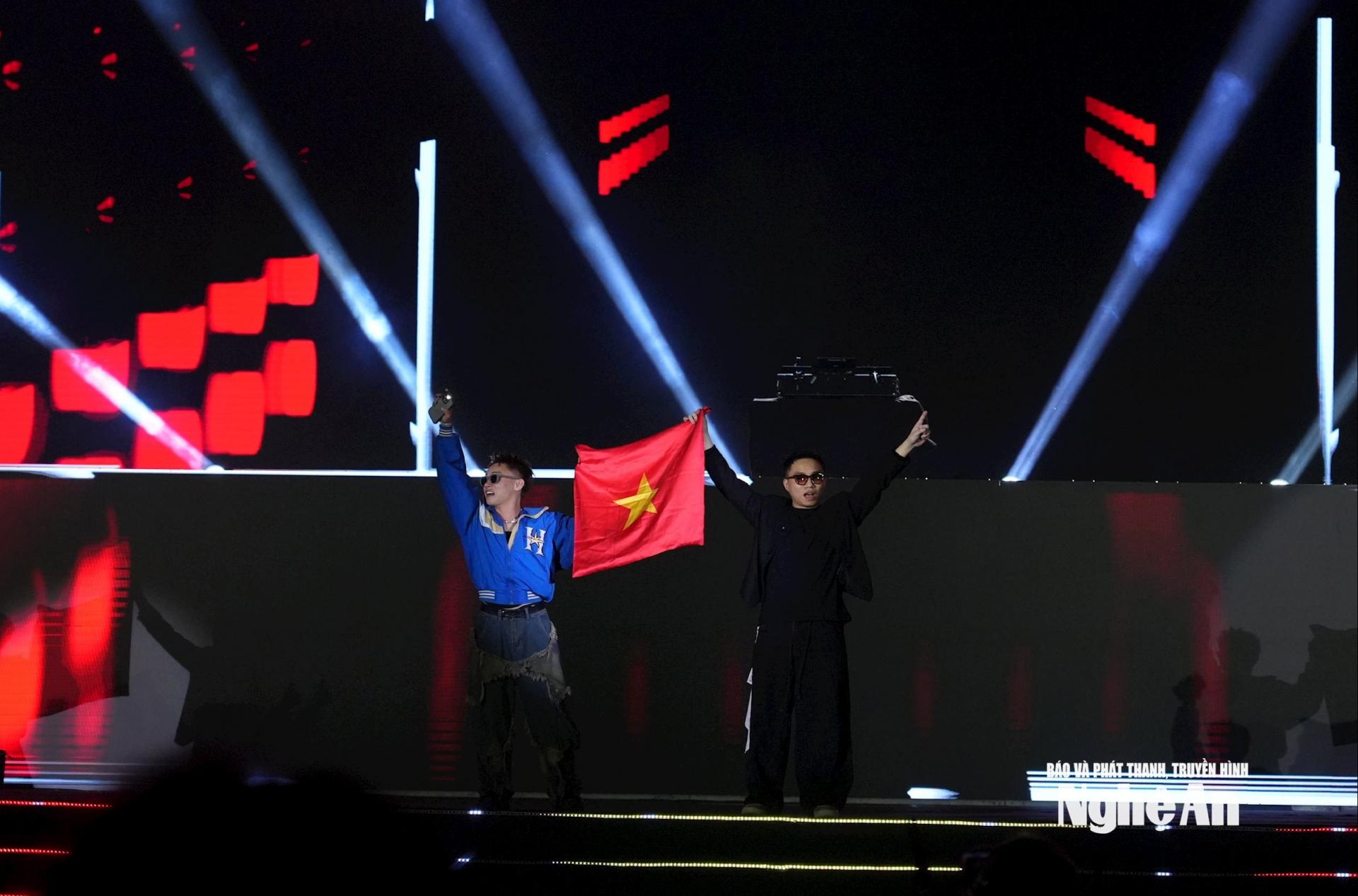 | DJ Dsmall và Rapper trình diễn đã khuấy động chương trình nghệ thuật Countdown “Nghệ An chào 2026 – Hào khí Sông Lam”. Ảnh: Thành Chung |
