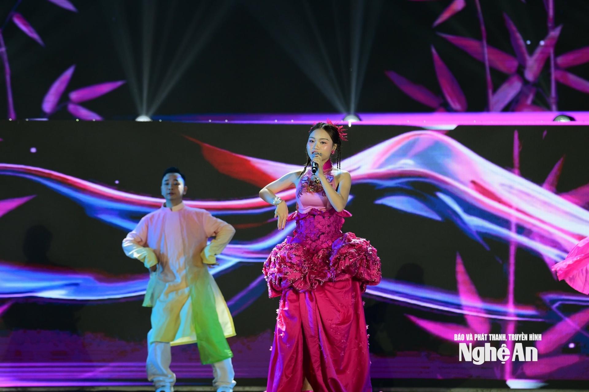 Các tiết mục hát múa, trình diễn dân gian, nhạc trẻ, EDM, rap… do những nghệ sĩ nổi tiếng như Võ Hạ Trâm, Hà Quỳnh Như, DJ Dsmall, rapper Hà Lê, cùng các nghệ sĩ, diễn viên Trung tâm Nghệ thuật Truyền thống Nghệ An và nhiều nhóm nhảy, ca sĩ đang hoạt động tại địa phương biểu diễn đã dẫn dắt khán giả đi từ những giai điệu dân gian sâu lắng đến không gian âm nhạc điện tử bùng nổ.