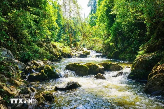 | Đầu nguồn thác Cành Lình, thuộc khu vực giáp ranh giữa 2 xã Bình Chuẩn và Mường Ham (tỉnh Nghệ An), nơi xuất phát của dòng Khe Cố, mạch sống của thung lũng Bình Chuẩn. (Ảnh: Xuân Tiến/TTXVN) |