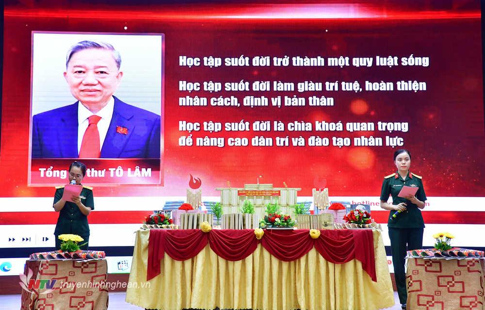 Bộ Chỉ huy Quân sự tỉnh trưng bày, giới thiệu gần 500 cuốn sách, gồm những cuốn sách về Bác Hồ và các vị tướng lĩnh, các vị lãnh đạo, góp phần vào sự nghiệp giải phóng dân tộc và bảo vệ Tổ quốc; những cuốn sách hay giới thiệu những diễn biến lịch sử về cuộc tổng tiến công và nổi dậy mùa xuân 1975; Chiến thắng Điện Biên Phủ; lịch sử Quân đội Nhân dân Việt Nam, Lực lượng vũ trang Quân khu 4, lực lượng vũ trang tỉnh Nghệ An….