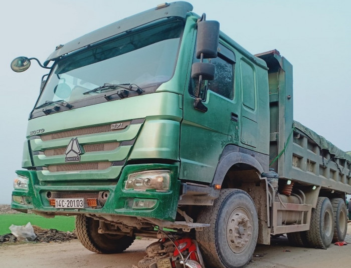 | Xe bồn chở bê tông tươi xảy ra va chạm với xe máy. |