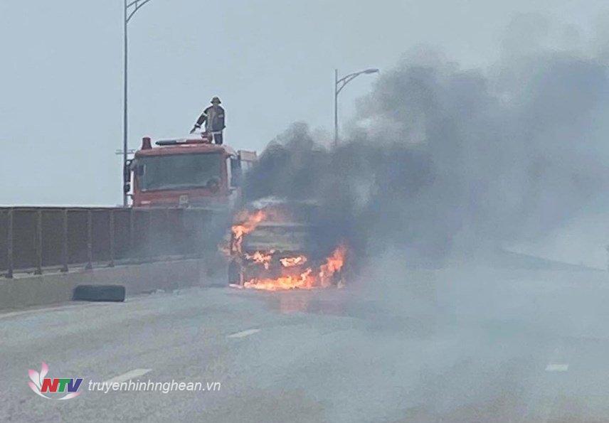 Vụ tai nạn khiến đường Vành đai 3 trên cao hướng đi Pháp Vân ùn tắc kéo dài nhiều km. CSGT ở đầu tuyến và các nút giao phía Cầu Giấy sau đó phải phân luồng xe cộ đi xuống đường dưới thấp.