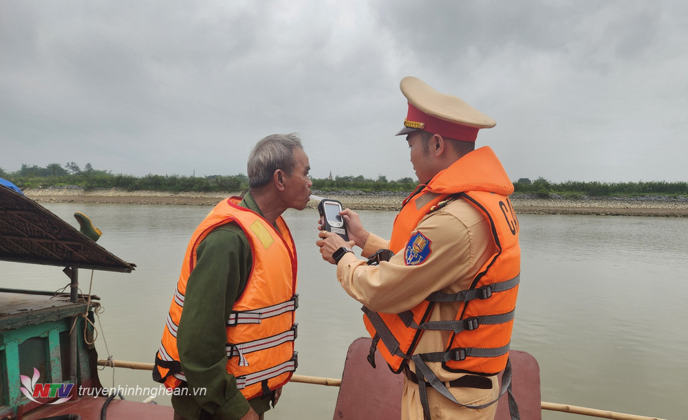 | Cảnh sát giao thông thủy đo nồng độ cồn lái tàu, thuyền viên |