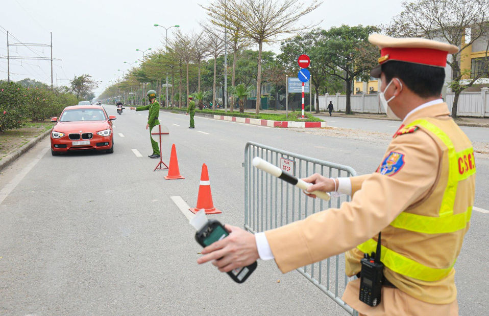 | Cục Cảnh sát giao thông sáng nay chặn đường cao tốc chiều Bắc Nam, phân luồng phương tiện về hướng đường 1A. Ảnh: Lam Sơn |