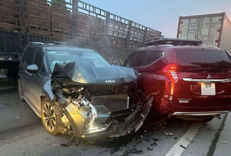 Vụ va chạm liên hoàn đã khiến nhiều xe bị biến dạng. Trong đó, có ít nhất 2 ô tô con hiệu Mescedes và Mitsubishi, 1 xe tải và xe khách loại 16 chỗ.