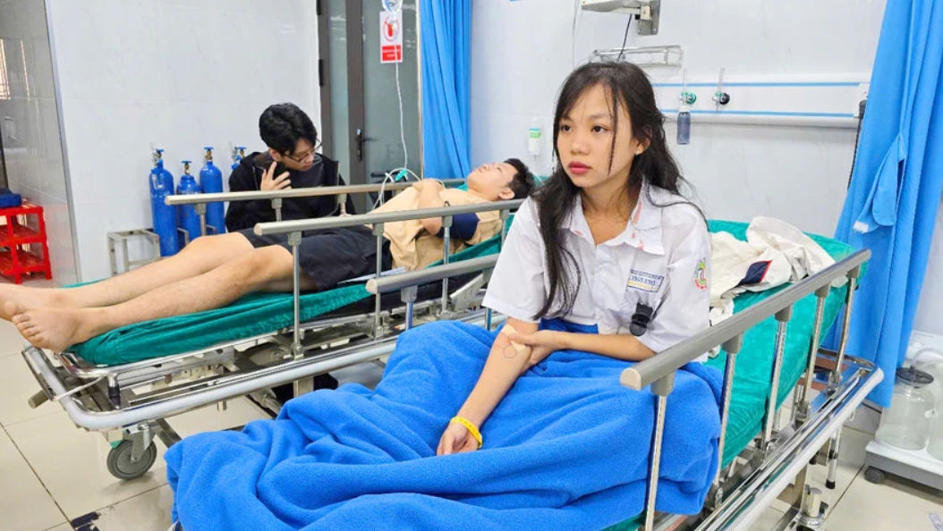 | Các em học sinh bị thương đang được điều trị, chăm sóc sức khỏe. Ảnh: LK. |
