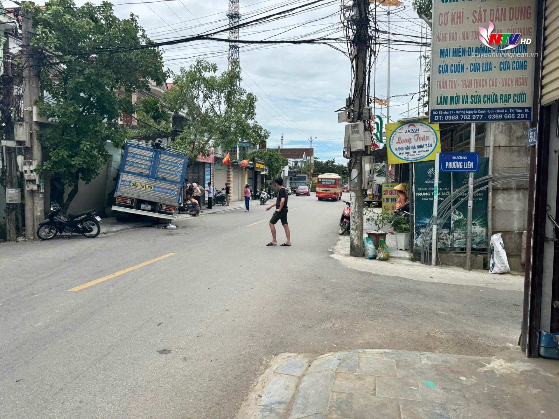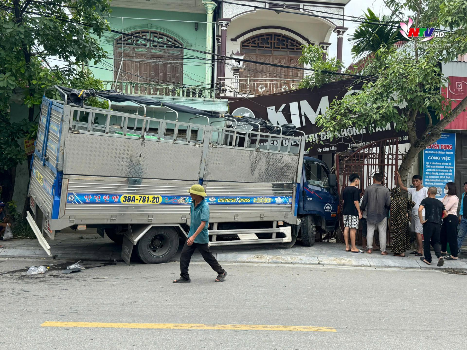 Do đánh lái gấp, xe tải sau đó tiếp tục đâm sập cổng một hộ dân bên đường. Cổng sắt và trụ gạch bị đổ, các mảng gạch văng vào sân, làm hư hỏng phần đuôi và đèn hậu bên phải chiếc ô tô con đang đỗ. Kính xe tải cũng bị nứt vỡ sau cú va chạm.