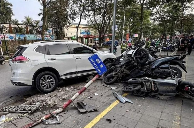 Hậu quả, lái xe ô tô con tử vong tại chỗ, 1 người bị thương. 3 xe ô tô liên quan bị hư hỏng, trong đó xe con gần như biến dạng sau tai nạn.