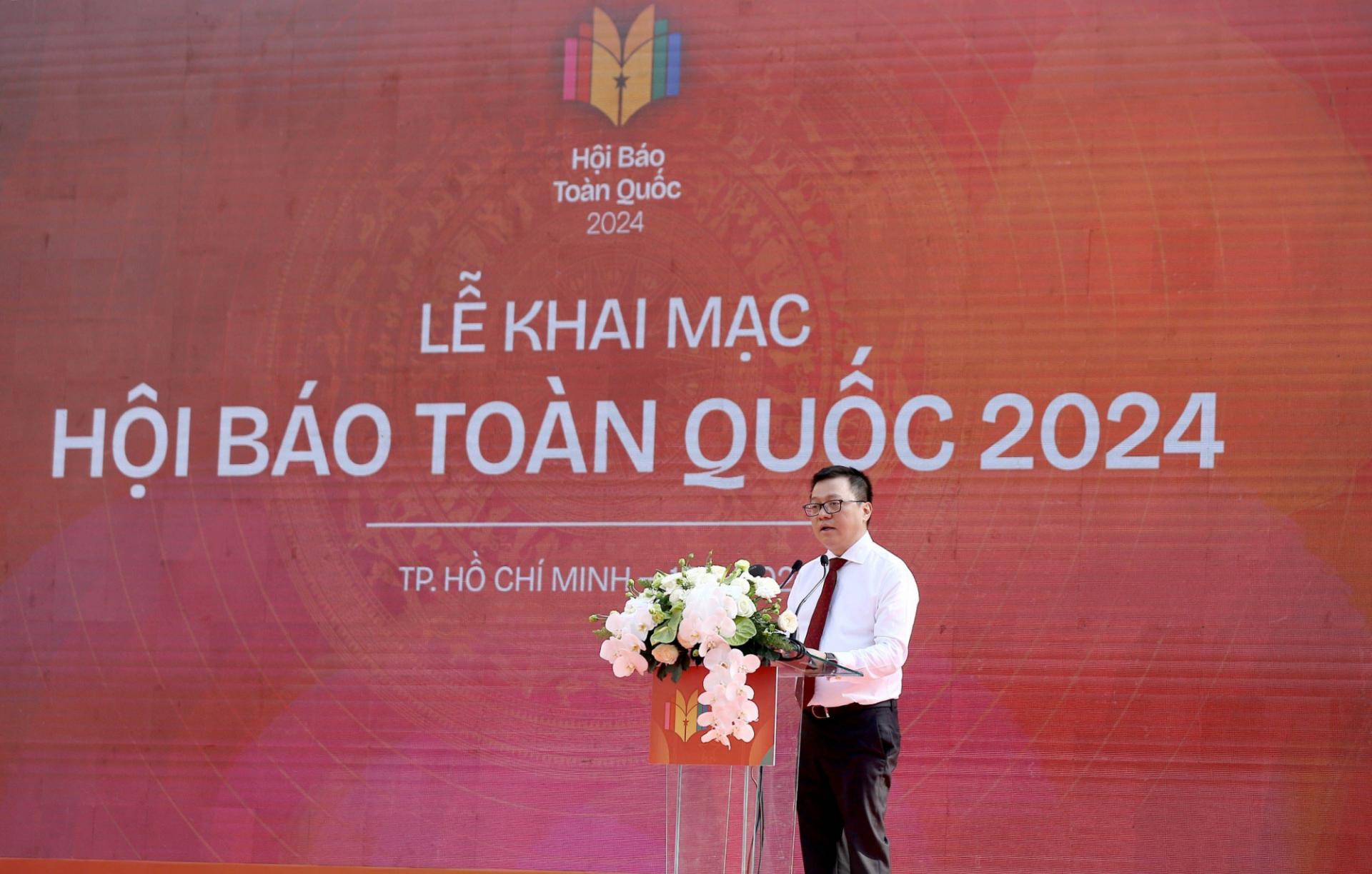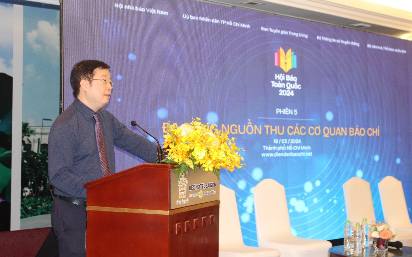 | Đồng chí Trần Minh Ngọc - Giám đốc Đài PT-TH Nghệ An, Chủ tịch Hội nhà báo tỉnh phát biểu tại hội nghị. |