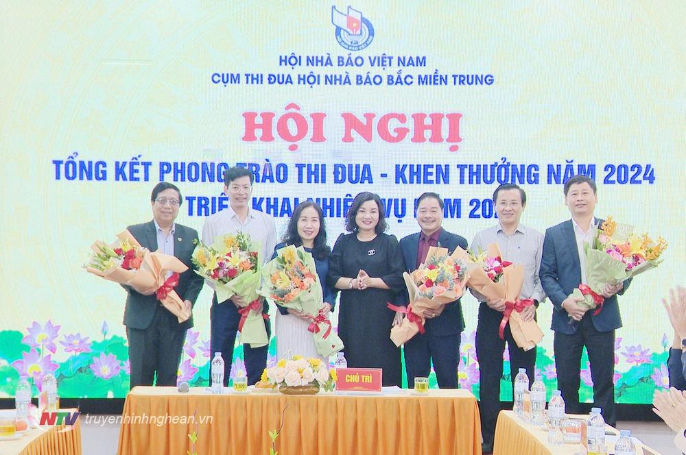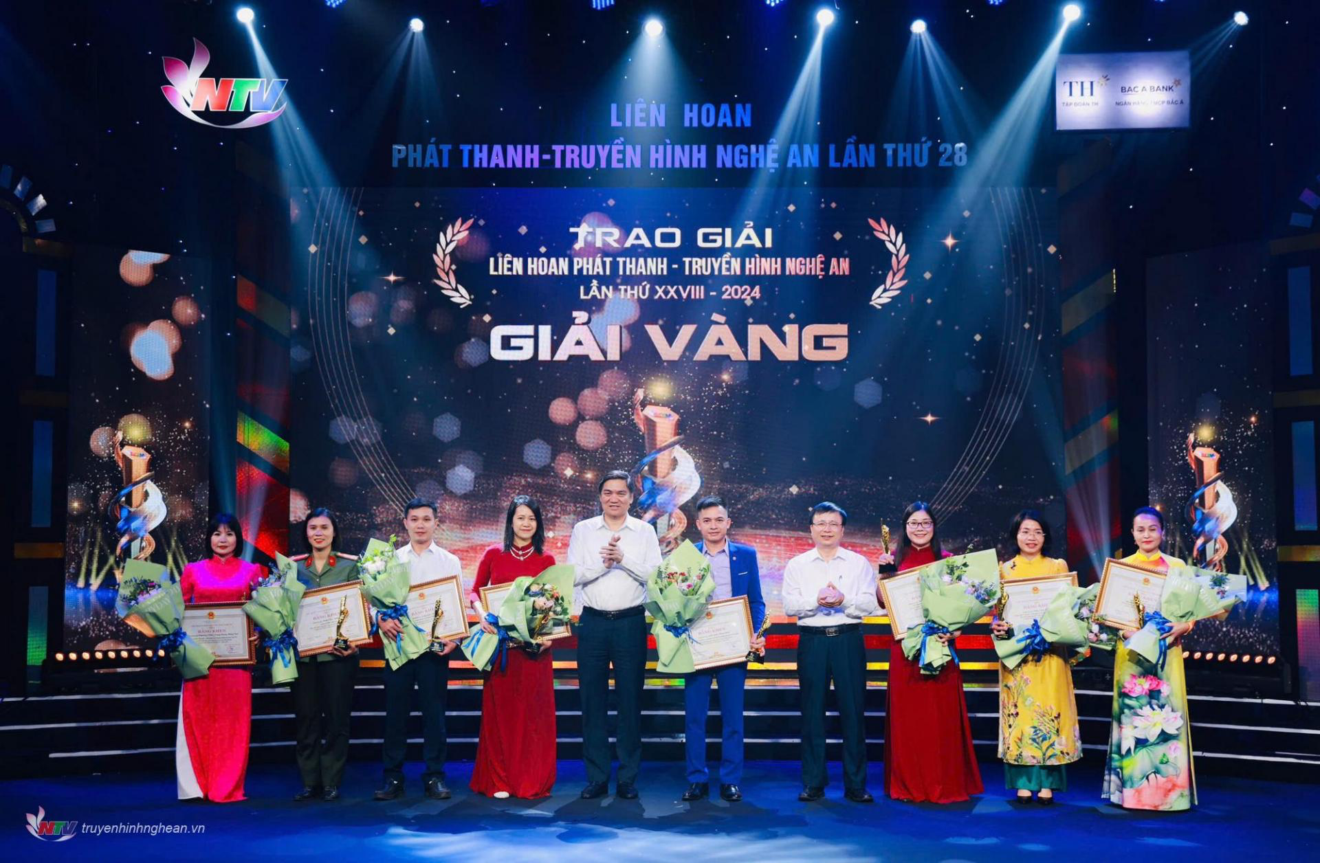| Nhà báo Thuý Vinh - Đài PTTH Nghệ An (ngoài cùng bên phải) đại diện êkip nhận giải B. |