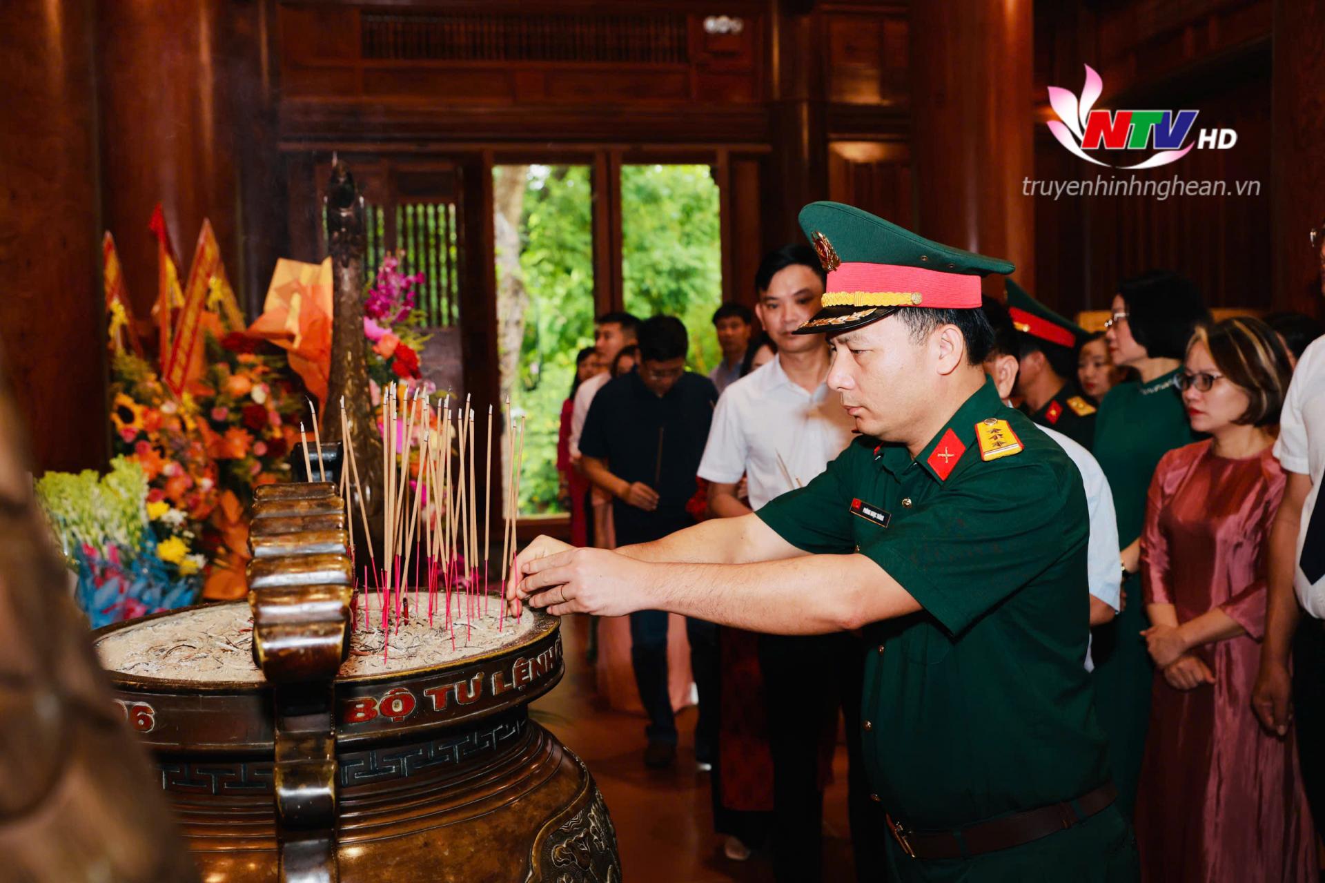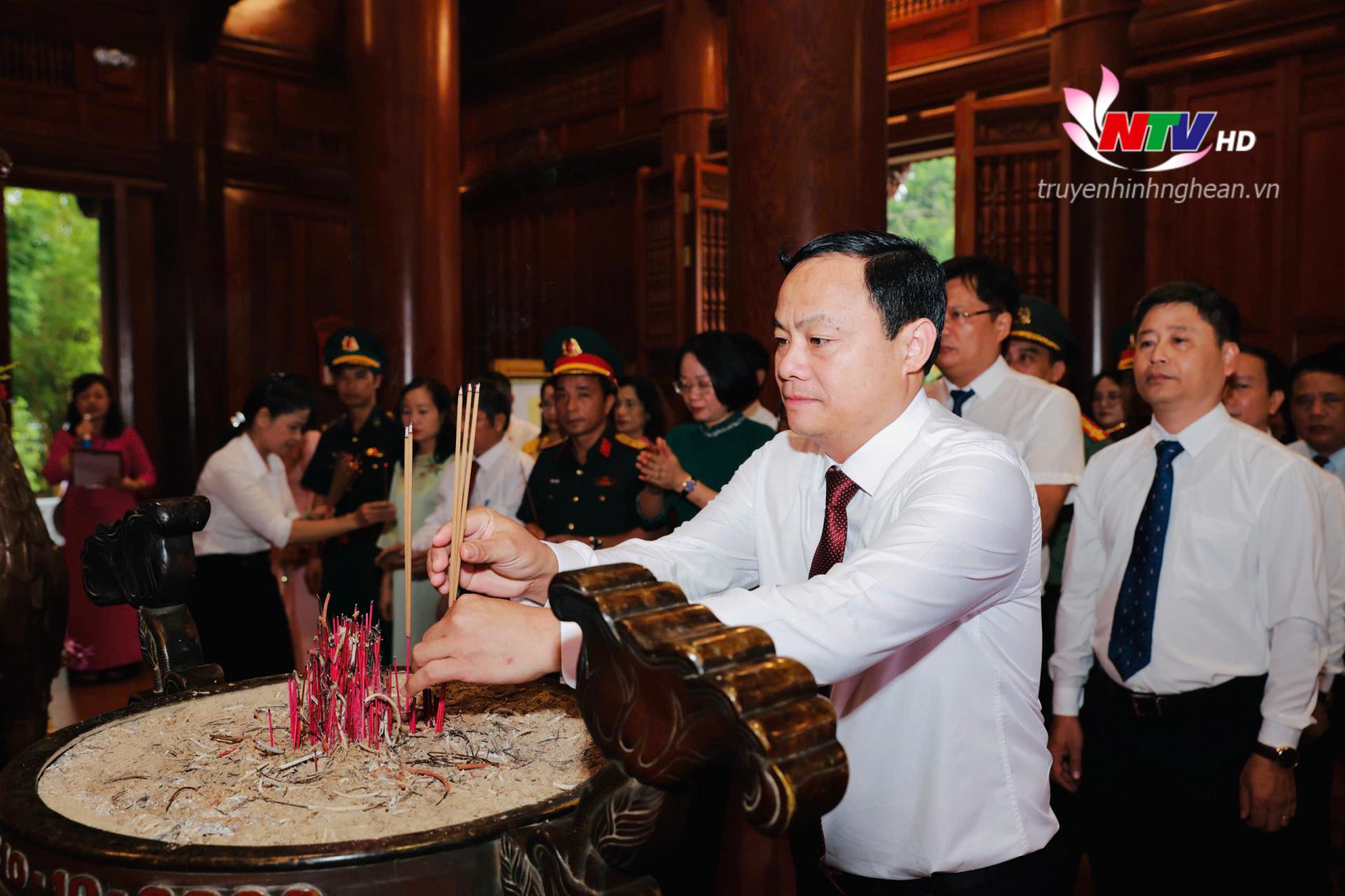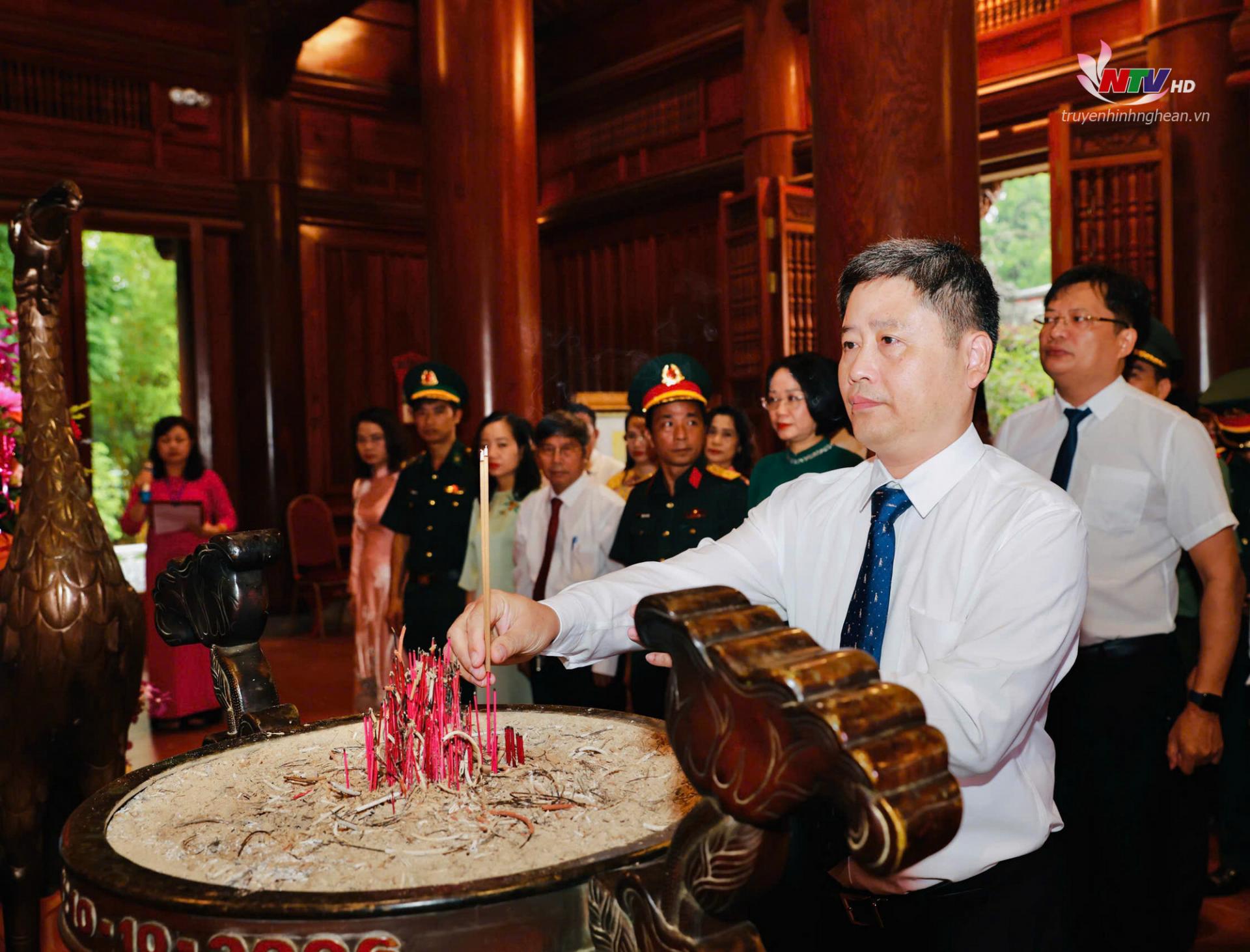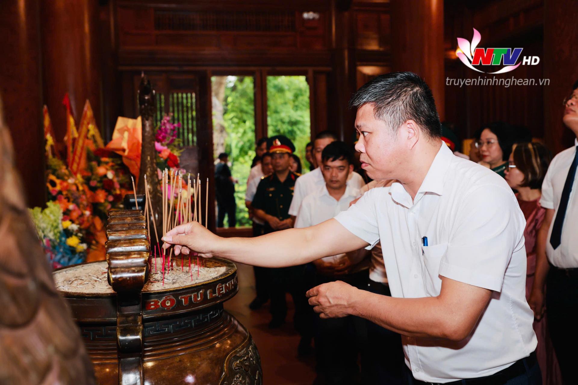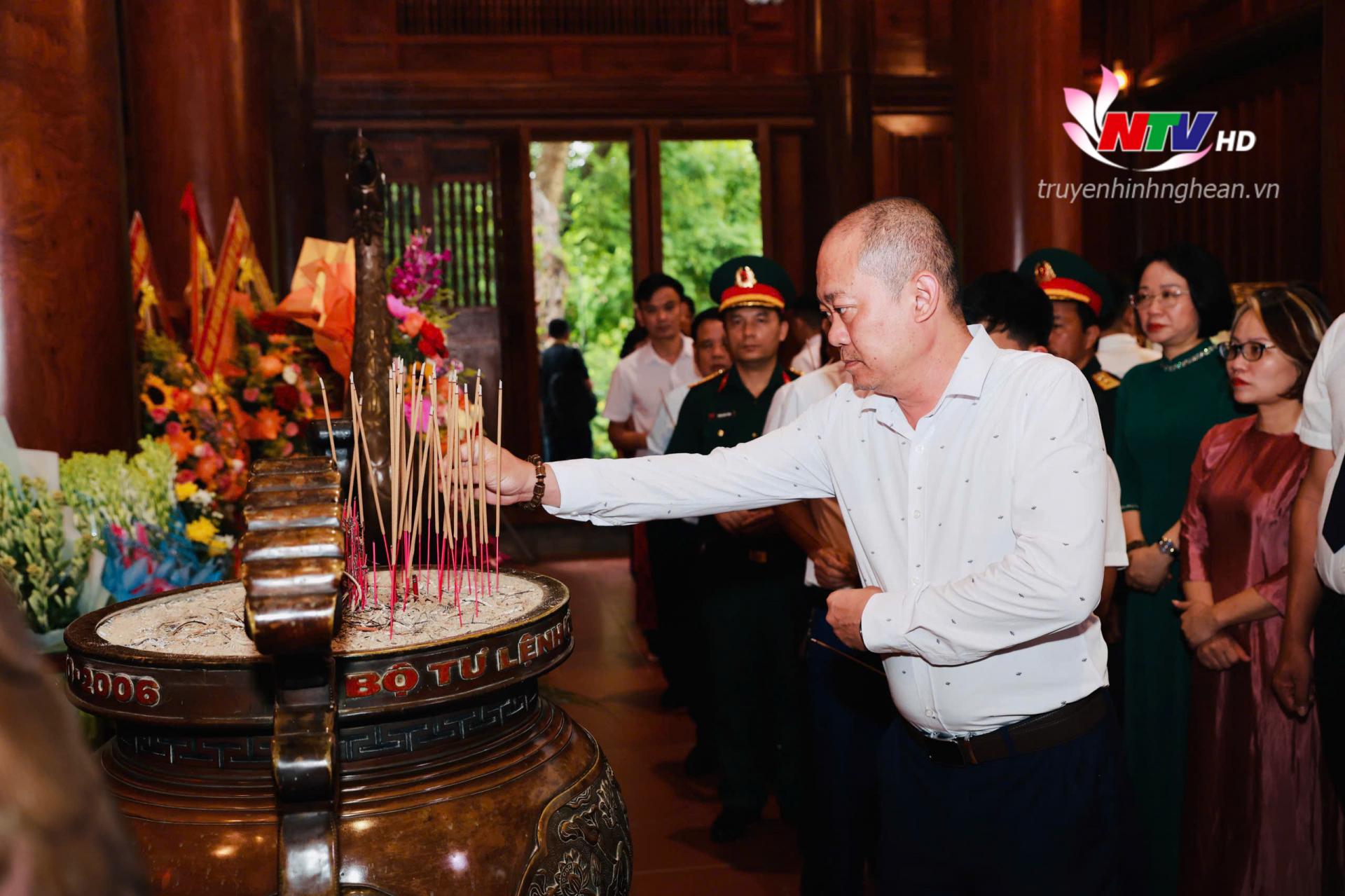 | Đồng chí Ngô Đức Kiên - Tổng Biên tập Báo Nghệ An, Phó Chủ tịch Hội Nhà báo tỉnh dâng hương tưởng niệm Chủ tịch Hồ Chí Minh. |