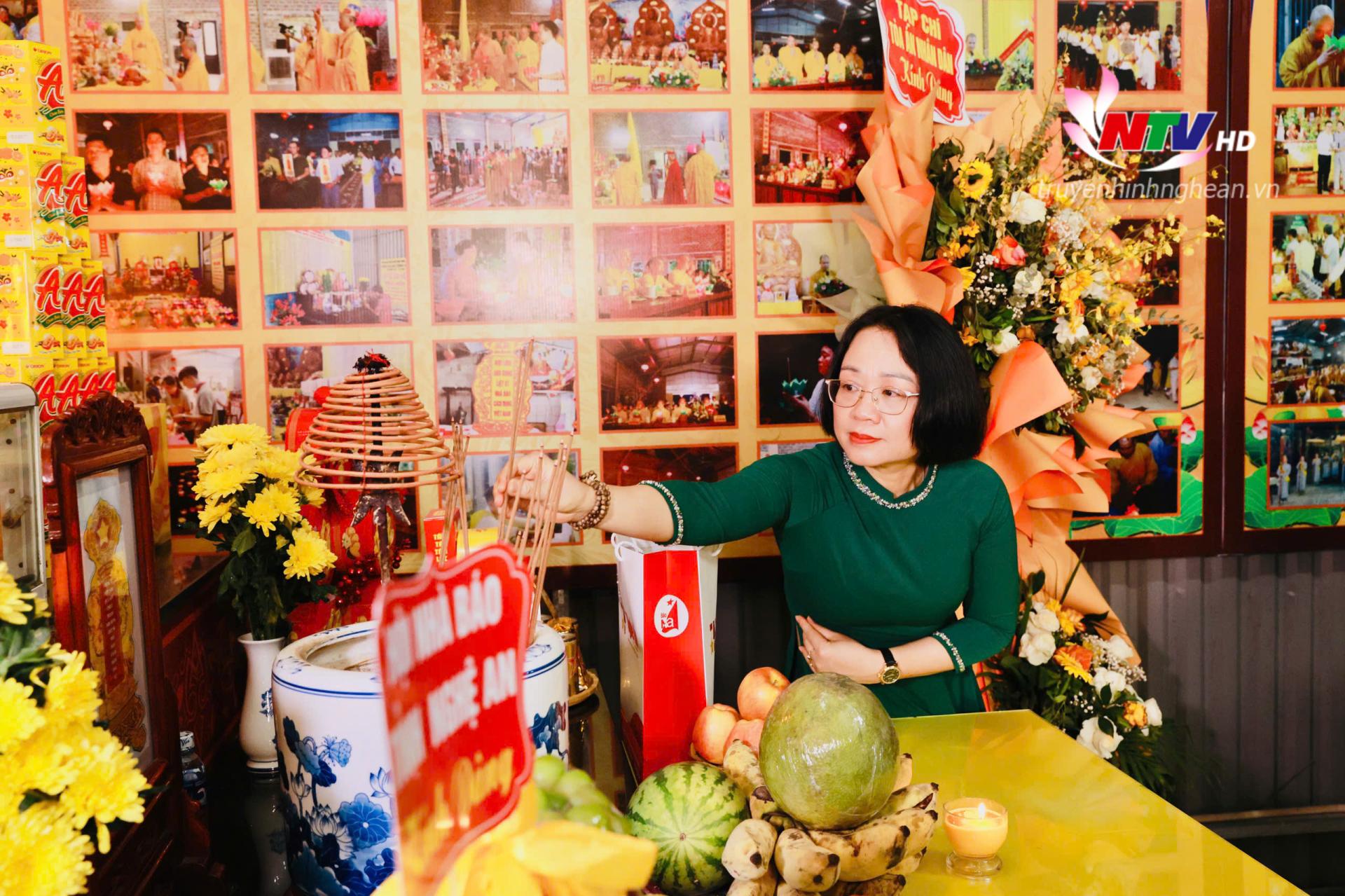 | Đồng chí Hồ Thị Ngân - Phó Chủ tịch Thường trực Hội Nhà báo tỉnh dâng hương tưởng niệm Chủ tịch Hồ Chí Minh. |