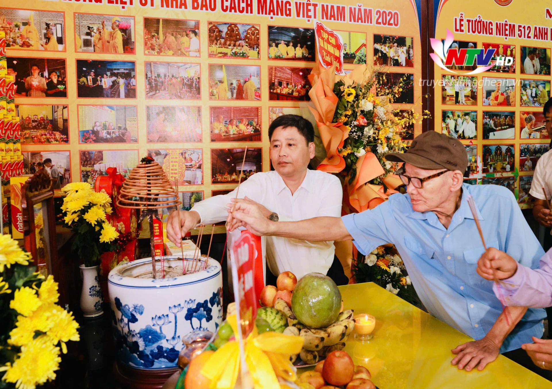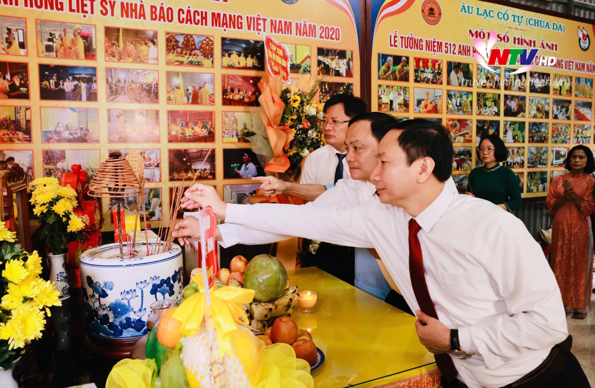 | Đồng chí Trần Minh Ngọc - Giám đốc Đài PT-TH tỉnh Nghệ An, Chủ tịch Hội Nhà báo tỉnh dâng hương 512 liệt sĩ là nhà báo, phóng viên. |