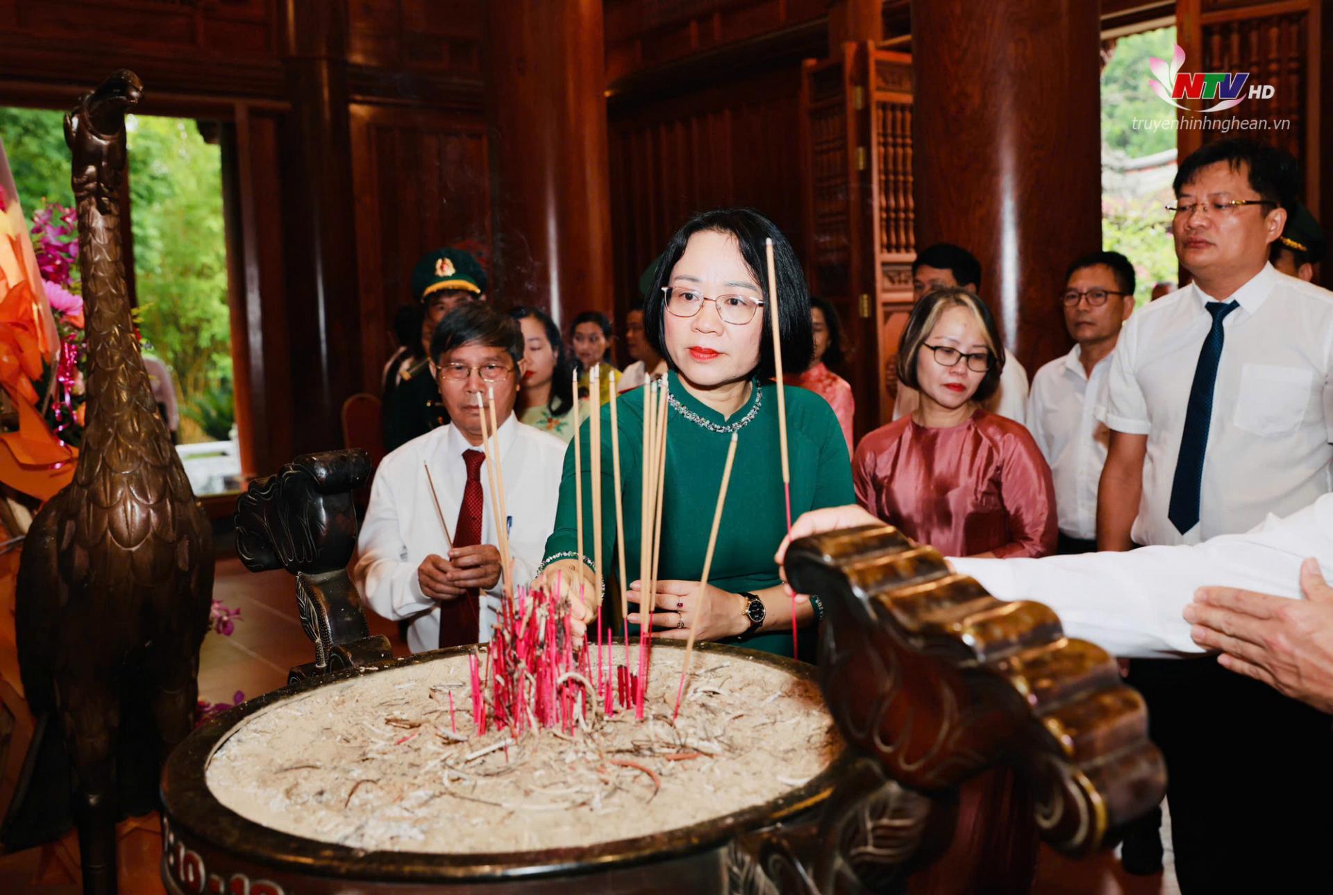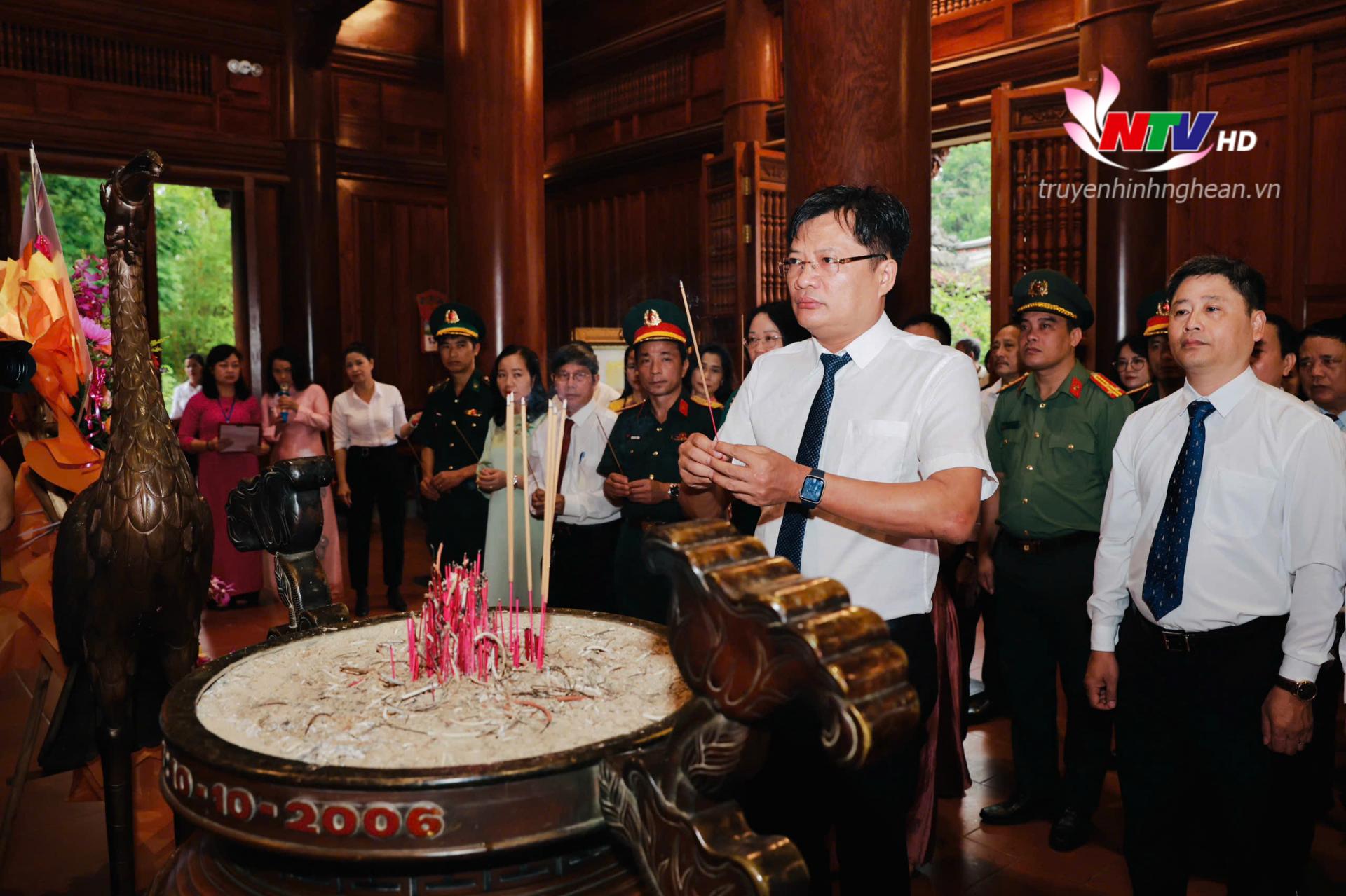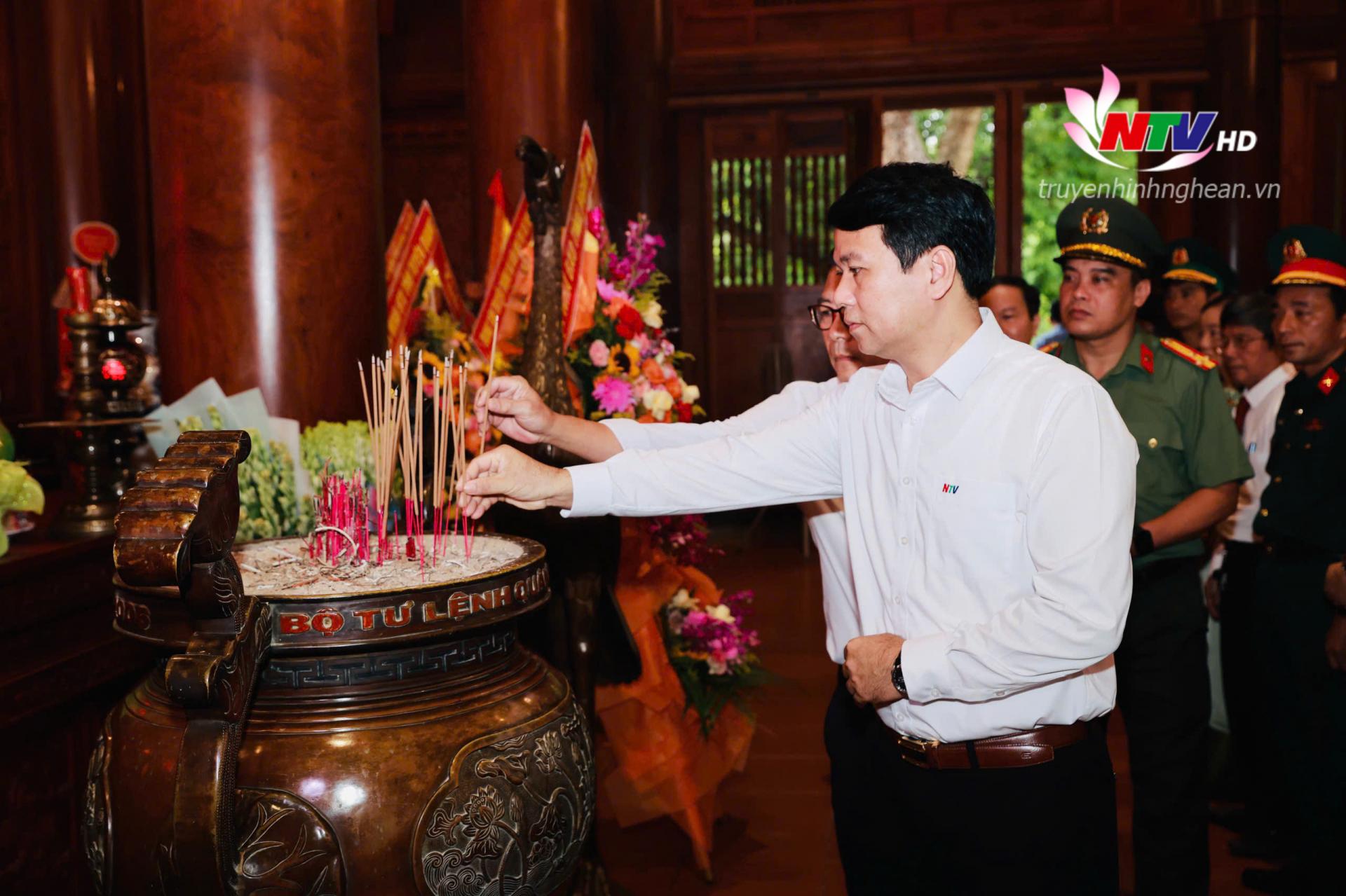 | Đồng chí Trần Minh Ngọc - Giám đốc Đài PT-TH tỉnh Nghệ An, Chủ tịch Hội Nhà báo tỉnh dâng hương tưởng niệm Chủ tịch Hồ Chí Minh. |