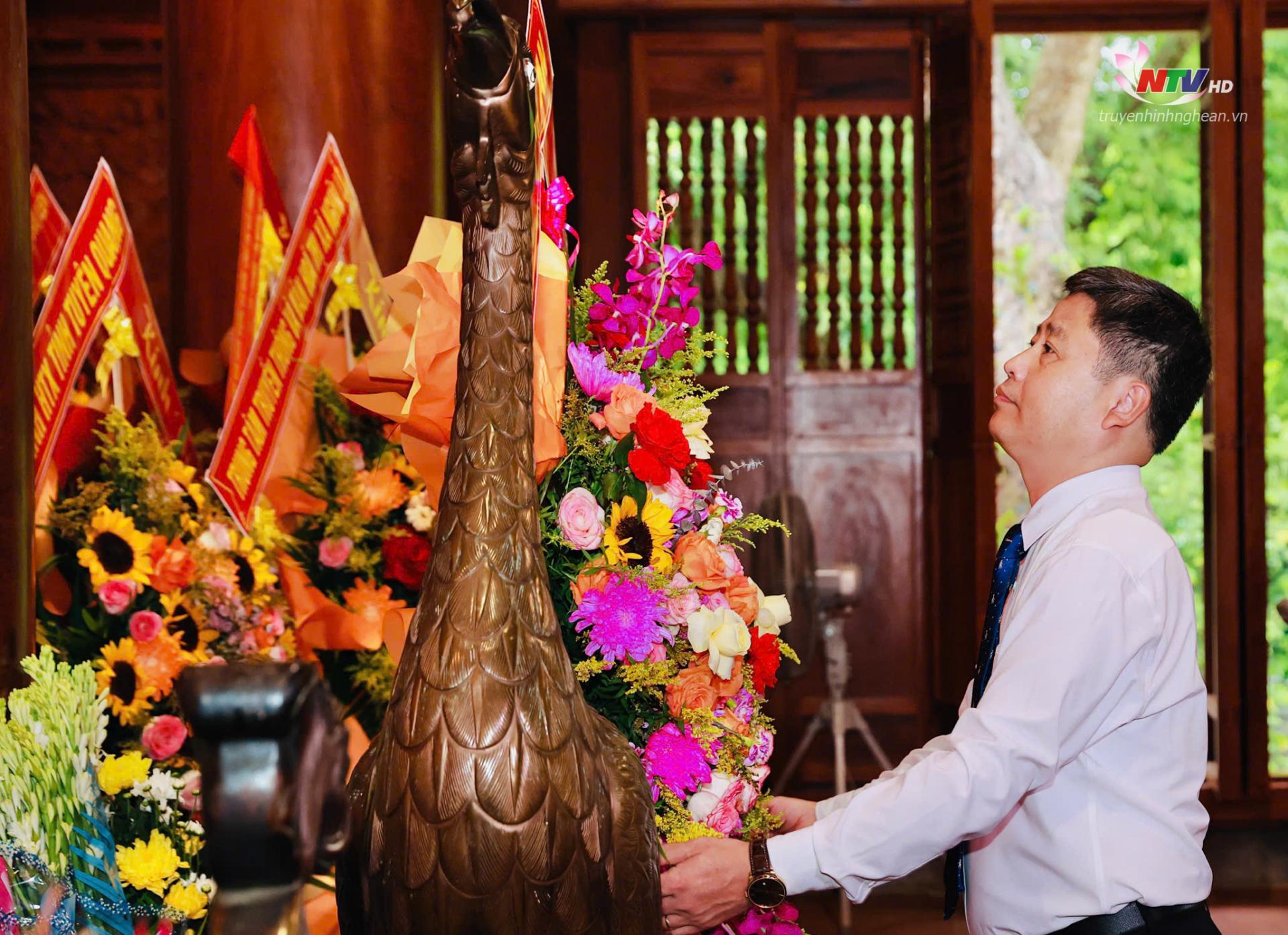 | Đồng chí Trần Minh Ngọc - Giám đốc Đài PT-TH tỉnh Nghệ An, Chủ tịch Hội Nhà báo tỉnh dâng hoa tưởng niệm Chủ tịch Hồ Chí Minh. |