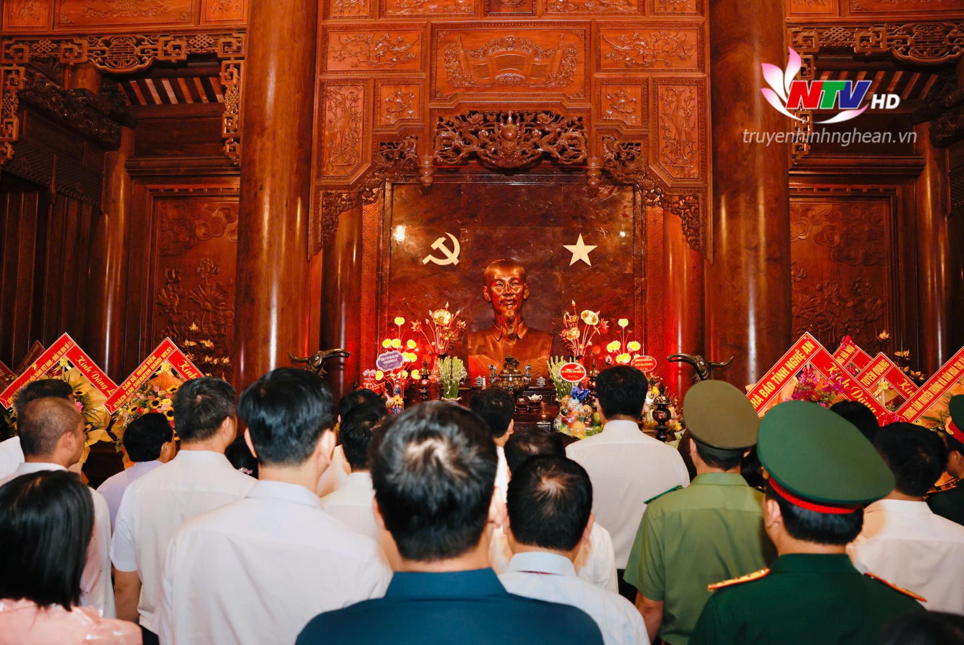 | Đoàn đại biểu Hội Nhà báo Nghệ An dâng hương tưởng niệm Chủ tịch Hồ Chí Minh. |