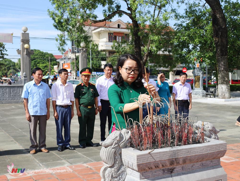 | Huyện uỷ - HĐND - UBND - UBMTTQ huyện Hưng Nguyên dâng hương cố Tổng Bí thư Lê Hồng Phong. |
