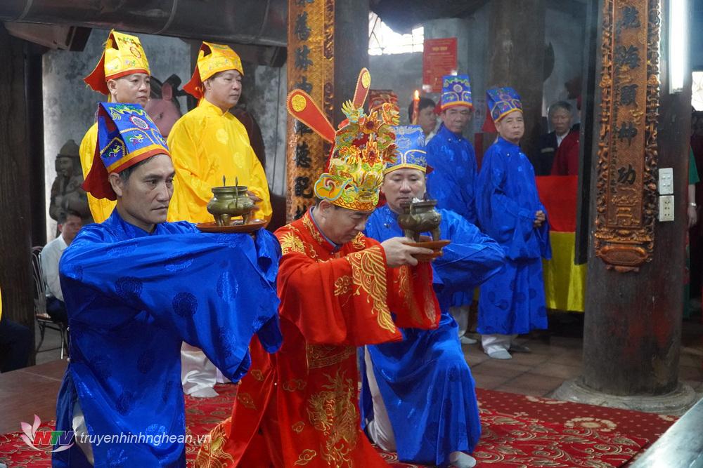 | Du khách thưởng thức món cá trích nướng ăn kèm bánh mướt tại ngôi đền linh thiêng nhất xứ Nghệ. |