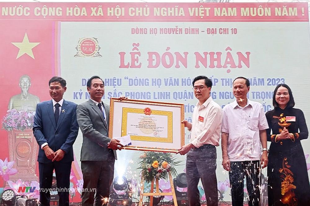 | Lãnh đạo Sở Văn hoá - Thể thao trao Bằng xếp hạng di tích Lịch sử văn hóa cấp tỉnh nhà thờ họ Nguyễn Tư. |