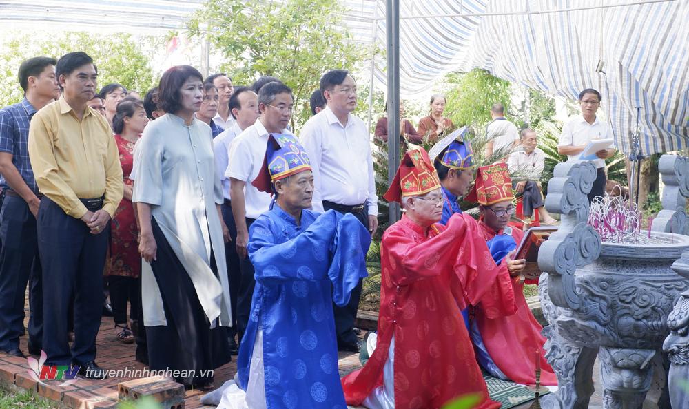 | Lãnh đạo tỉnh và các Sở, ban ngành dâng hương tưởng niệm Tổng Bí thư Lê Hồng Phong. |