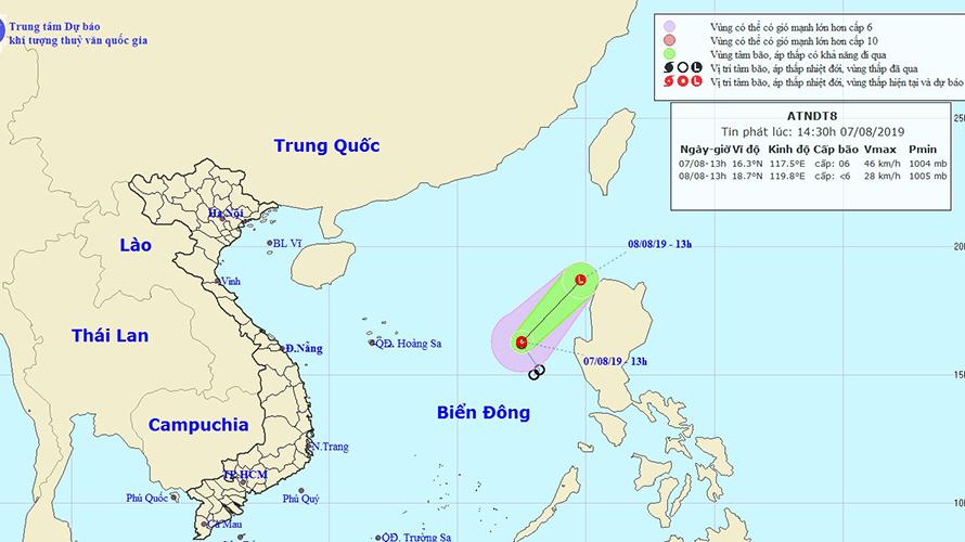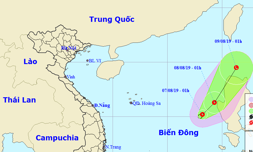 Hiện nay (19/08), Rãnh áp thấp có trục đi qua khu vực Bắc Bộ.Dự báo: Do ảnh hưởng của rãnh áp thấp kết hợp với hội tụ gió từ mực 1500 đến 5000m được thiết lập nên chiều tối và đêm nay (19/8) ở Bắc Trung Bộ có mưa rào và dông rải rác. Trong mưa dông có khả năng xảy ra lốc, sét, mưa đá và gió giật mạnh..
