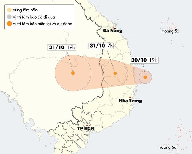 Đà Nẵng đến Bình Thuận: Nhiều mây, có mưa vừa, mưa to, có nơi mưa rất to và rải rác có dông; riêng Quảng Ngãi, Bình Định, Phú Yên và Khánh Hòa có mưa to đến rất to. Gió bắc đến tây bắc cấp 3. Trong cơn dông có khả năng xảy ra lốc, sét và gió giật mạnh. Độ ẩm từ 68 - 99%. Nhiệt độ thấp nhất 22-25 độ C, phía nam 24 - 26 độ C, cao nhất 26 - 29 độ C.