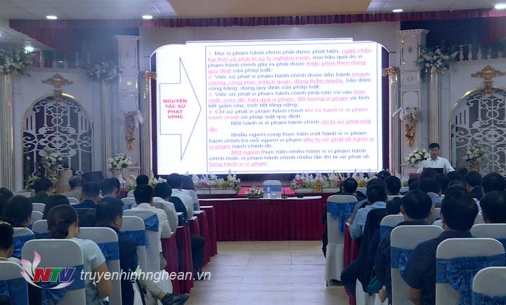 | Ông Quảng (bên phải) hội ý với lực lượng chức năng. |