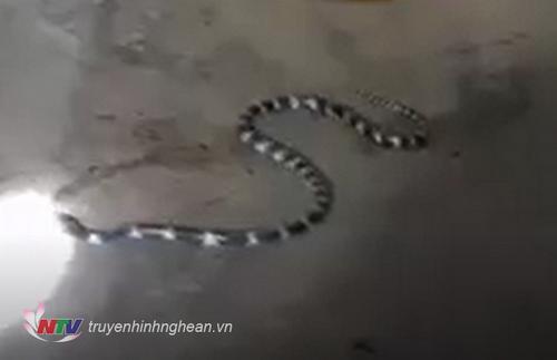 | Rắn cạp nia xuất hiện trong nhà tắm một nhà dân ở Đô Lương. |