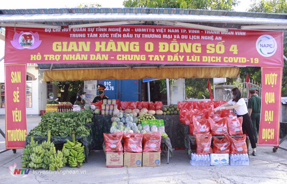 | Để kịp thời hỗ trợ cung cấp nhu yếu phẩm thiết yếu cho người dân, nhất là những hộ dân có hoàn cảnh khó khăn, Bộ CHQS tỉnh phối hợp cùng MTTQ TP Vinh, Thành đoàn Vinh tổ chức các “Gian hàng 0 đồng” để cung cấp nhu yếu phẩm cần thiết cho người dân, trong đó ưu tiên những hộ dân khó khăn để họ yên tâm ổn định cuộc sống trong những ngày giãn cách xã hội. Trên địa bàn TP Vinh có 3 gian hàng 0 đồng được bố trí tại 3 phường: Hồng Sơn, Hưng Bình, Vinh Tân. Các hộ khó khăn được các phường lập danh sách cụ thể. |