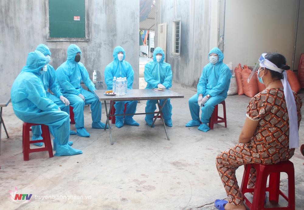 | Trao các suất cơm cho UBMTTQ phường Nghi Tân để chuyển đến các chốt trực và khu cách ly. |