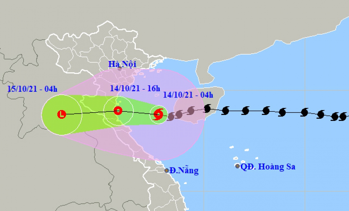 Vùng nguy hiểm trên Biển Đông đến 19 giờ ngày 14/10 (gió mạnh từ cấp 6 trở lên, giật từ cấp 8 trở lên): phía Bắc vĩ tuyến 17,5 độ Vĩ Bắc; phía Tây kinh tuyến 109,0 độ Kinh Đông. Toàn bộ tàu, thuyền hoạt động trong vùng nguy hiểm đều có nguy cơ cao chịu tác động của gió mạnh, sóng lớn và lốc xoáy. Cấp độ rủi ro thiên tai cấp 3.