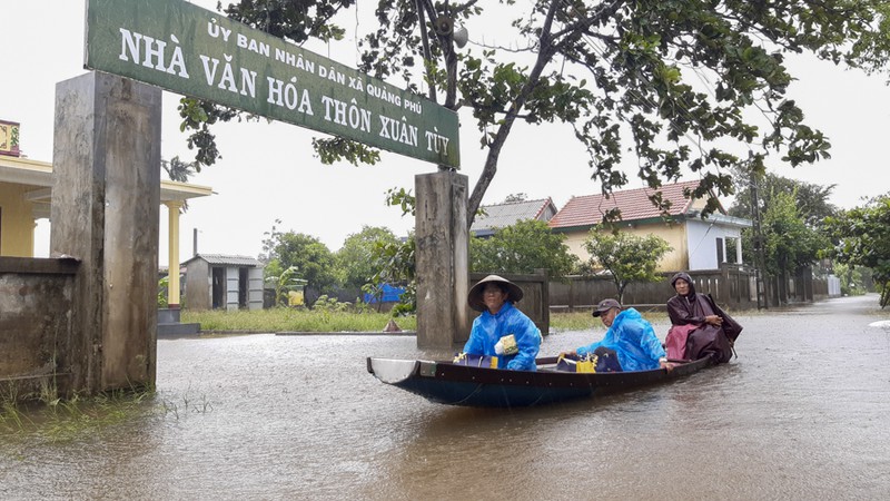 | Người dân huyện Lệ Thủy (Quảng Bình) phải dùng thuyền để di chuyển |