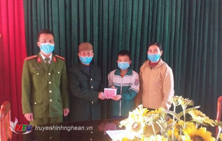 | Công an xã Hưng Lộc đến xác minh và hỗ trợ tìm kiếm người thân cho cháu bé. |