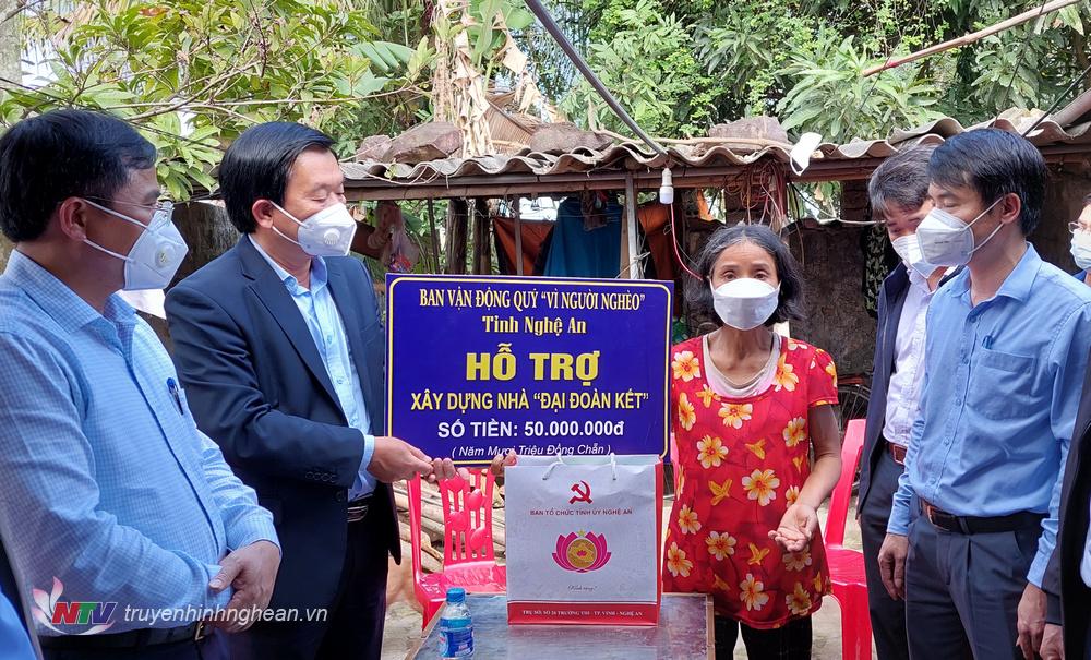 | Lãnh đạo Đài truyền hình Việt Nam trao quà cho các gia đình khó khăn tại xã Nghĩa thuận, thị xã Thái Hòa. |