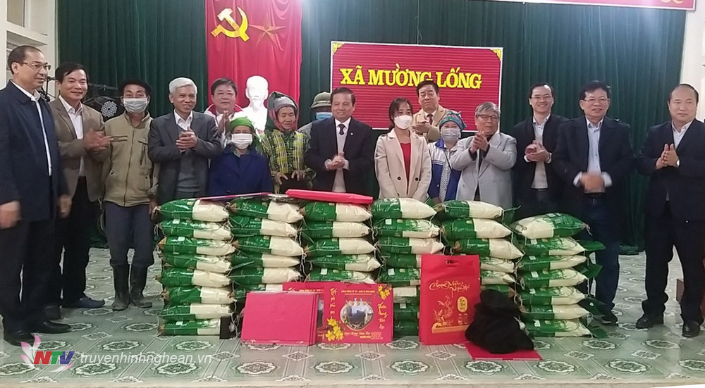 | Các đại biểu tặng quà cho các hộ nghèo. |