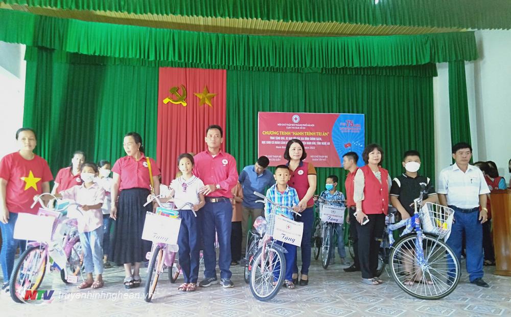 | Lực lượng chức năng tặng quà cho các ngư dân thoát nạn. |
