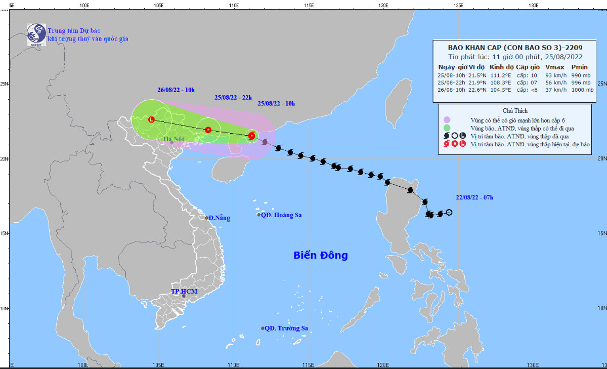 Bão số 3 hình thành từ một áp thấp nhiệt đới ngoài khơi đảo Luzon (Philippines), mạnh lên thành bão, có tên quốc tế là Ma-on, đi vào Biển Đông trong đêm 23/8, là cơn bão mạnh, tốc độ di chuyển rất nhanh, vùng mây rộng.