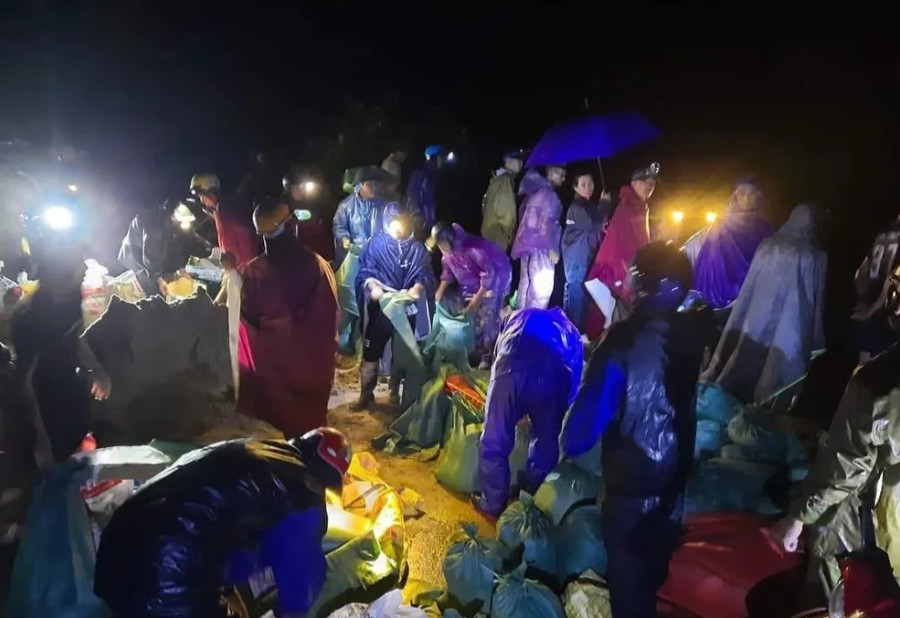 | Lãnh đạo huyện Quỳnh Lưu kiểm tra công tác phòng chống ngập lụt. |