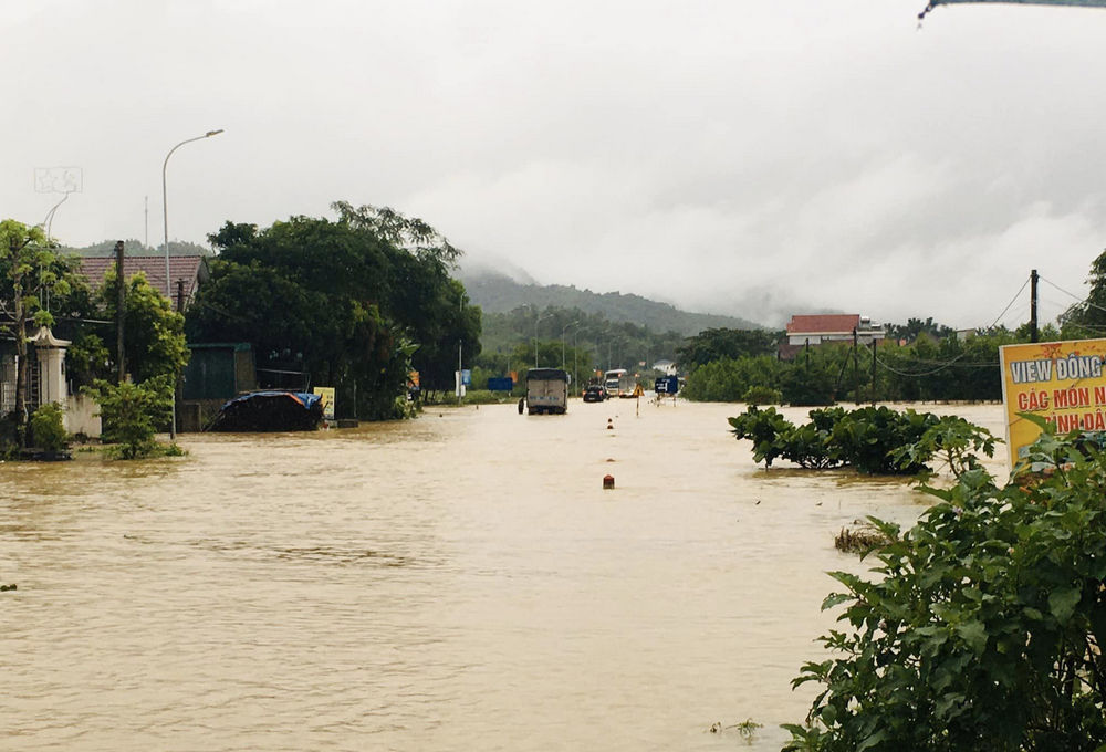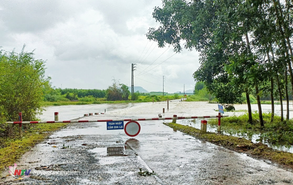 | Nhiều tuyến đường giao thông ở huyện Quỳnh Lưu bị chia cắt do ngập lụt. |
