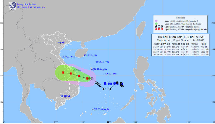 Trong khi đó, cơ quan khí tượng Nhật Bản cho biết bão có thể vào Biển Đông rạng sáng 17/10 với sức gió mạnh nhất 83 km/h, tương đương cấp 9, giật cấp 11.