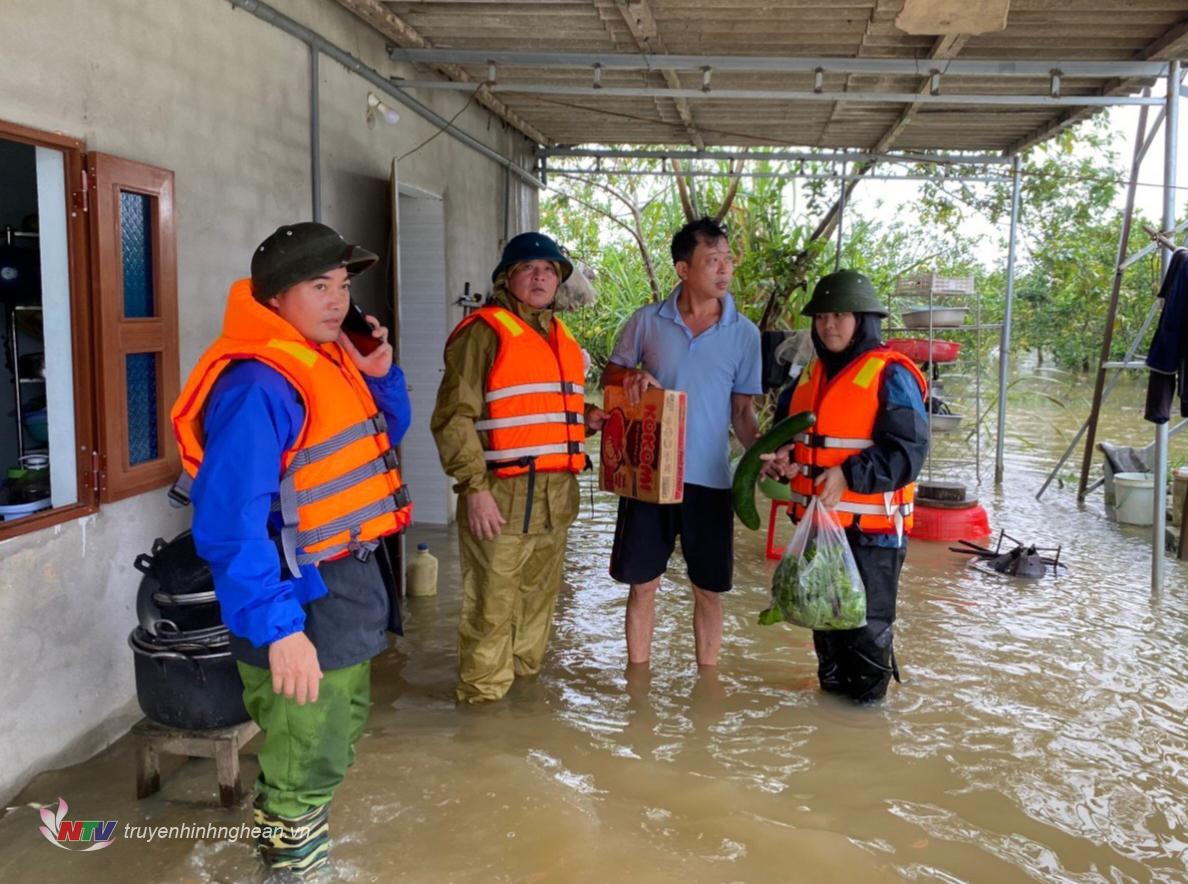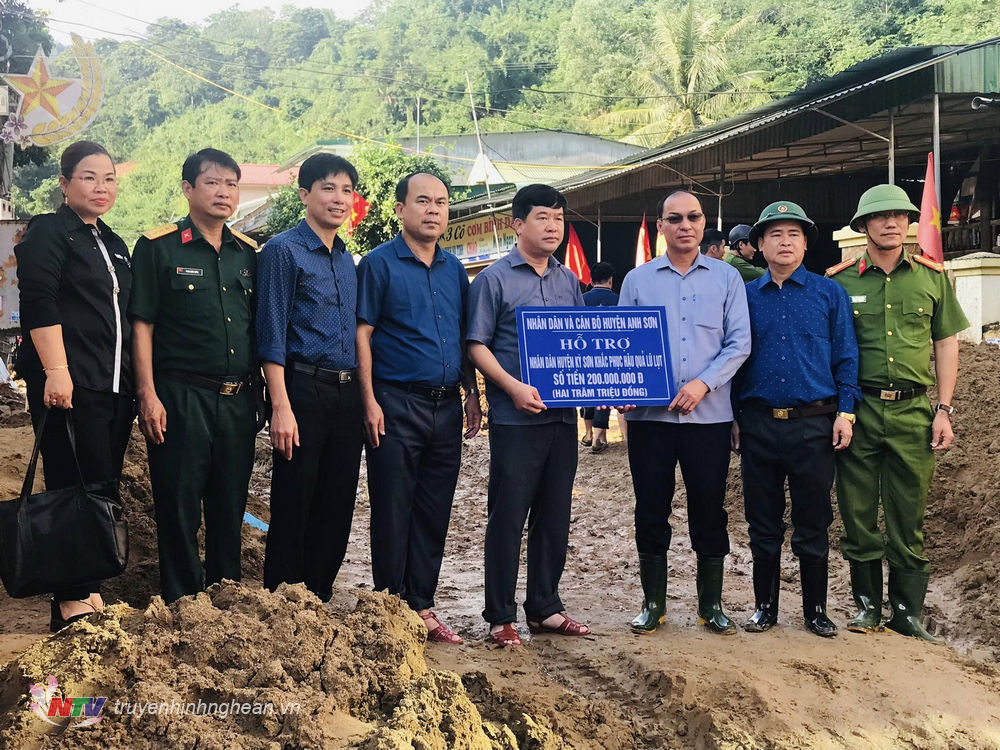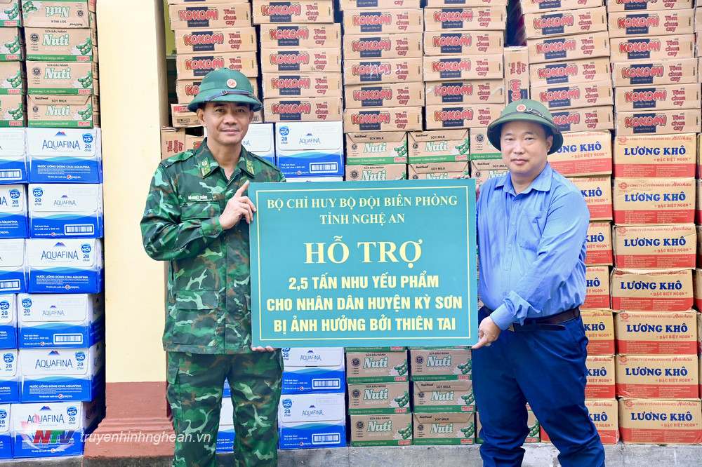| Lãnh đạo công an huyện Tân Kỳ quyên góp, ủng hộ nhân dân huyện Kỳ Sơn. |