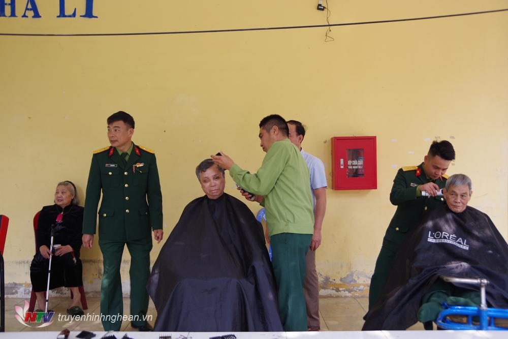 | Các chiến sỹ tiến hành cắt tóc, gội đầu cho các Thương binh ở Trung tâm. |