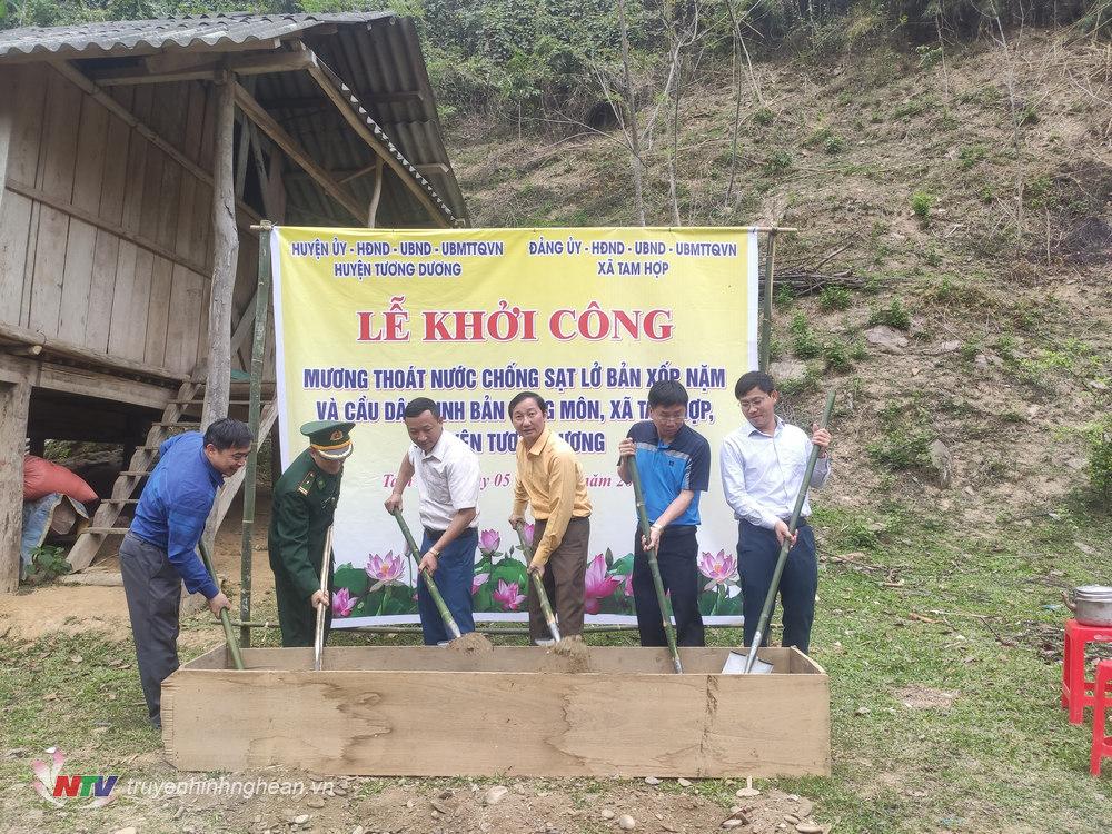 | Lãnh đạo huyện và xã trao huy hiệu Đảng cho các đảng viên. |