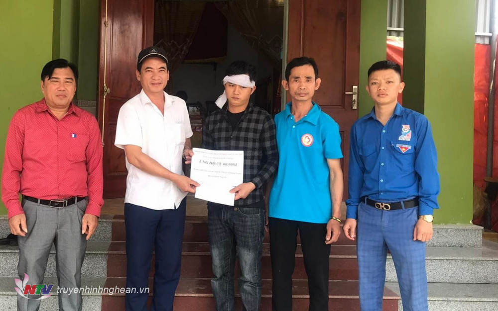 | Lãnh đạo xã Kỳ Tân tặng hoa và quà chúc mừng xóm Thanh Tân đón nhận danh hiệu Mô hình văn hóa cấp tỉnh. |