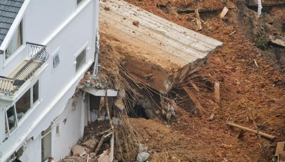 Thời điểm trên, bờ taluy của một công trình đang xây dựng cao khoảng 30 m bất ngờ đổ sập, hàng chục khối đất đá, bê tông tràn xuống phía dưới làm 3 căn nhà hư hại. Hiện trường sạt lở rộng khoảng 3.000 m2, có độ sâu 3-5m.